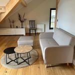 Nous avons souhaité vous proposer un intérieur chaleureux, moderne et convivial. Notre gite est mansardé dans toutes les pièces ce qui lui confère un charme qui ne vous laissera pas insensible. Notre gite peut héberger 2 ou 4 personne car le salon dispose d’une alcôve séparée par un rideau pour respecter l’intimité. Cette alcôve est équipée d’une banquette lit de 140×200 pour un vrai couchage confortable. Imaginez vous en train de prendre votre petit déjeuner, un apéritif ou votre diner sur le balcon avec vue sur le lac.